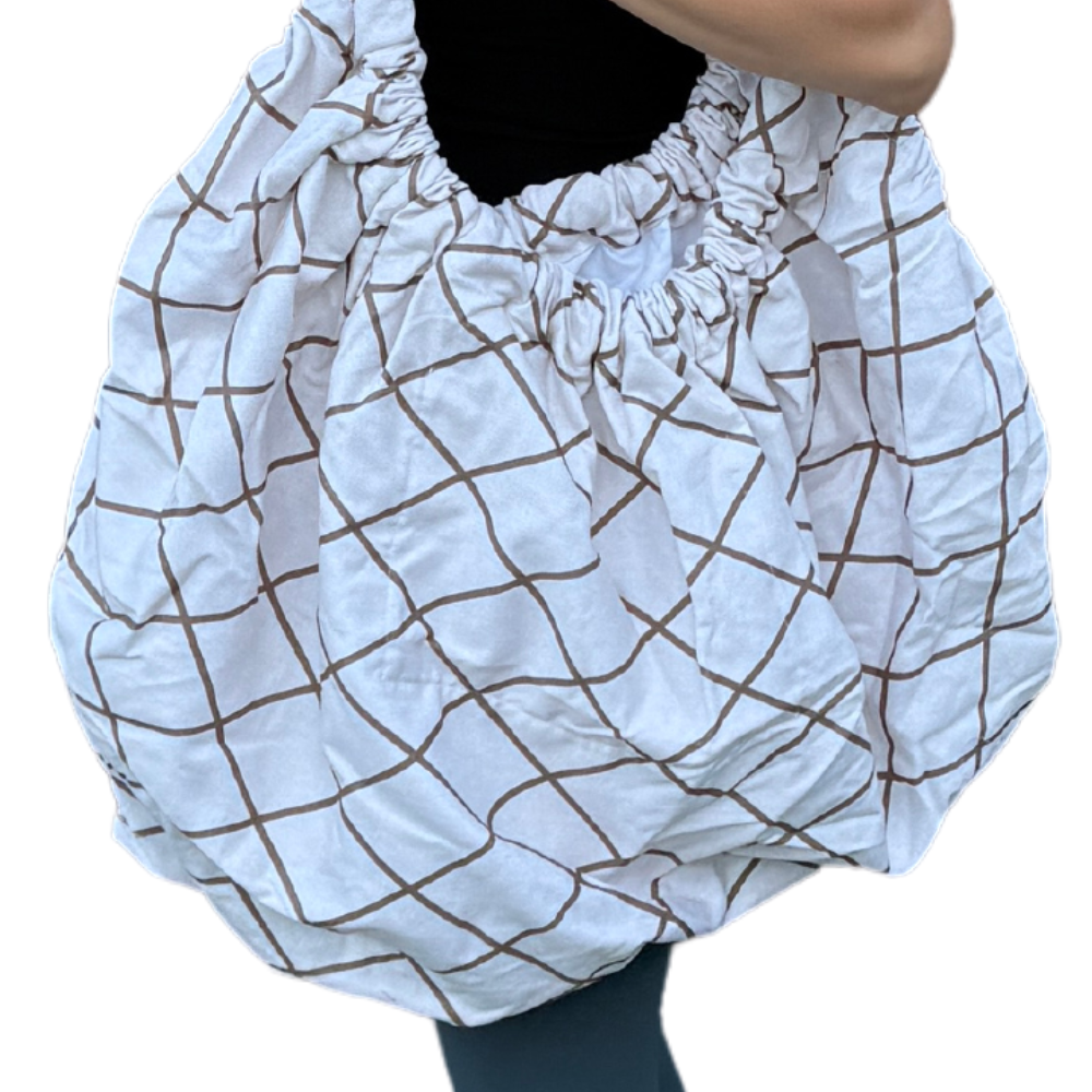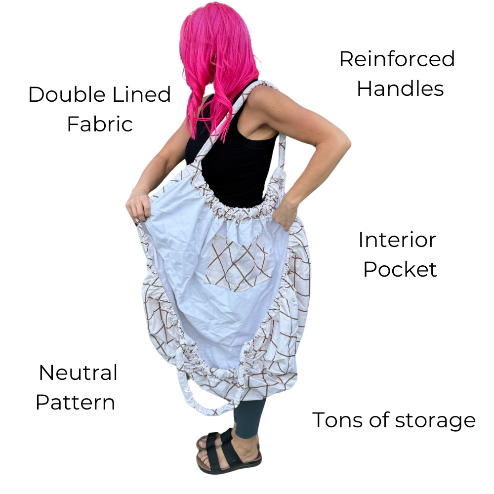 Stylish yet subtle, the VersaTote in a cream base with thin brown diamond-patterned stripes is perfect for anyone seeking a simple, neutral bag. Double-lined with heavy-duty fabric, reinforced handles, and a spacious interior pocket, it’s designed to handle whatever your day brings. With ample storage space, it’s an ideal choice for a dad-friendly diaper bag or an all-purpose tote for any occasion.